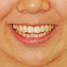 主訴 ガミースマイル 治療費 保険治療(矯正概算30万円、入院手術を入れて40万円から50万円) 治療期間 36ヶ月 性別 女性 治療前