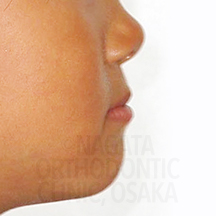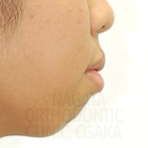 子どもの成長期はあごや歯の動きに柔軟性があるため、大人になってからでは手術が必要になるような症例でも、矯正治療だけで改善できることがあります。こちらの患者さんも口が閉じにくく出っ歯の状態でしたが、12才の成長期に矯正をスタートしたことで歯ならびと口元のバランスが整い、自然な横顔になりました。成長期の限られた時期を活かした治療は将来の負担を減らす大切なポイントです。リスク・副作用 - 装置交換当日から2-3日、噛み合わせると違和感(歯が浮いたような感じ、噛むと痛い)がある。