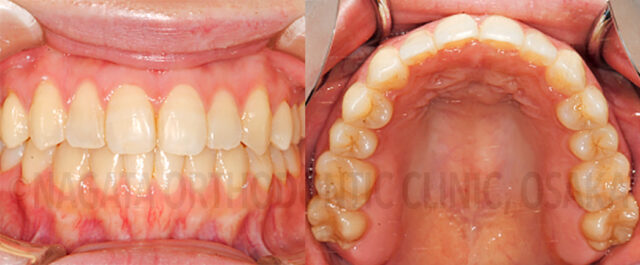 主訴 ガミースマイル 治療費 保険治療(矯正概算30万円、入院手術を入れて40万円から50万円) 治療期間 36ヶ月 性別 女性 治療前